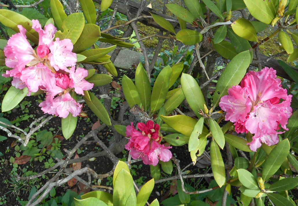 裏庭のシャクナゲは、何回かの移植にも負けず、春と秋に咲きます。
