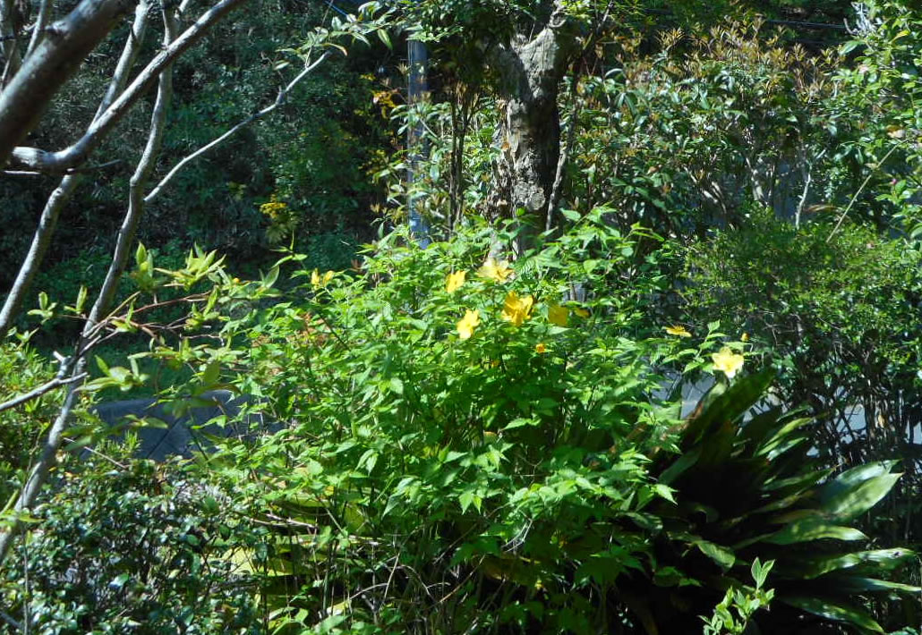 前の山から拝借した枝を植えました。我が家の庭でも花を咲かせるようにもなりました。